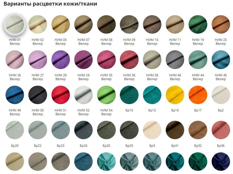 - Премиальный велюр на выбор – десятки оттенков для точного попадания в палитру вашего интерьера. Ткань приятна на ощупь, устойчива к истиранию и легко очищается от бытовых загрязнений.