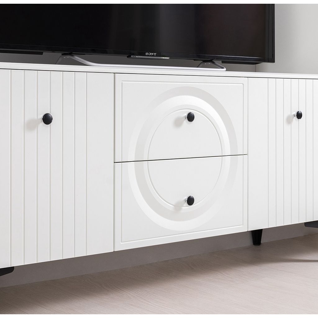 - Закрытые секции: выдвижные ящики и распашные дверцы удобны для хранения мелочей, таких как провода, пульты или другие аксессуары.