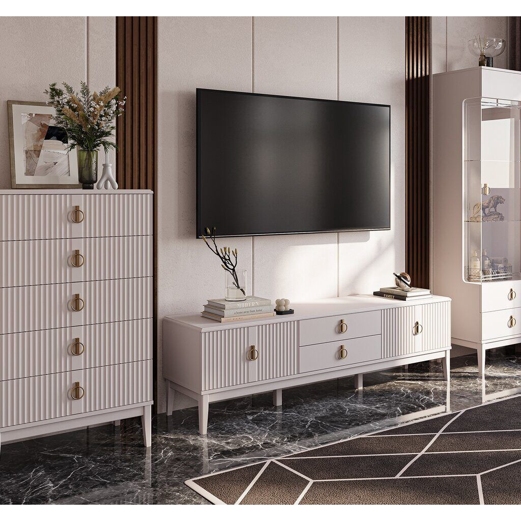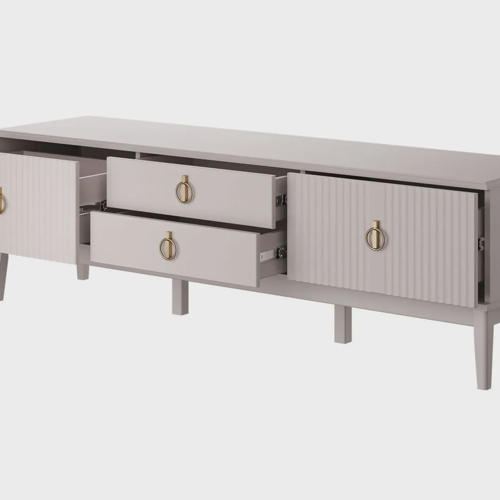 - Просторная столешница: верхняя поверхность тумбы идеально подходит для установки телевизора, аудио - или видеотехники, а также декоративных элементов, таких как рамки для фотографий или сувениры.