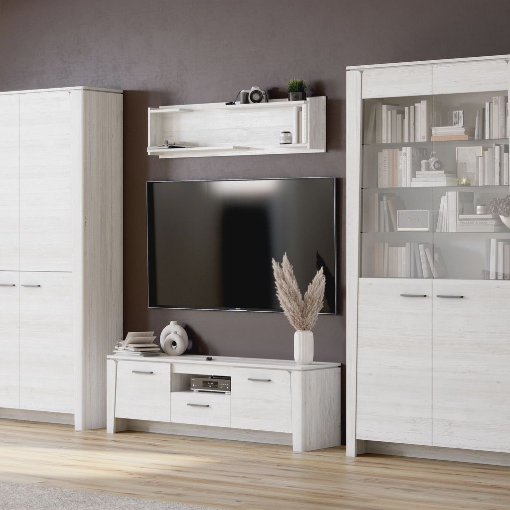 - Просторное хранение: внутренние полки и открытая секция позволяют удобно разместить телевизор, медиаплееры, игровые приставки, колонки и другие аксессуары.