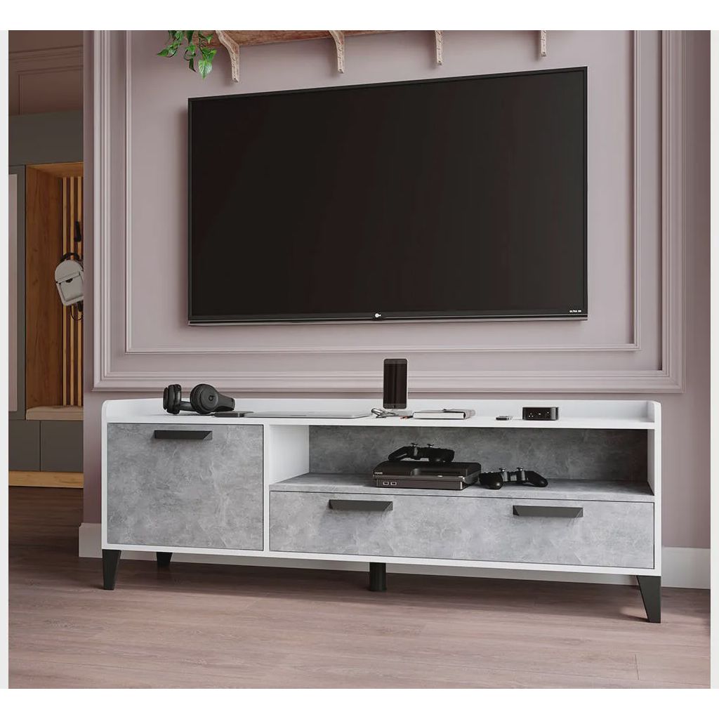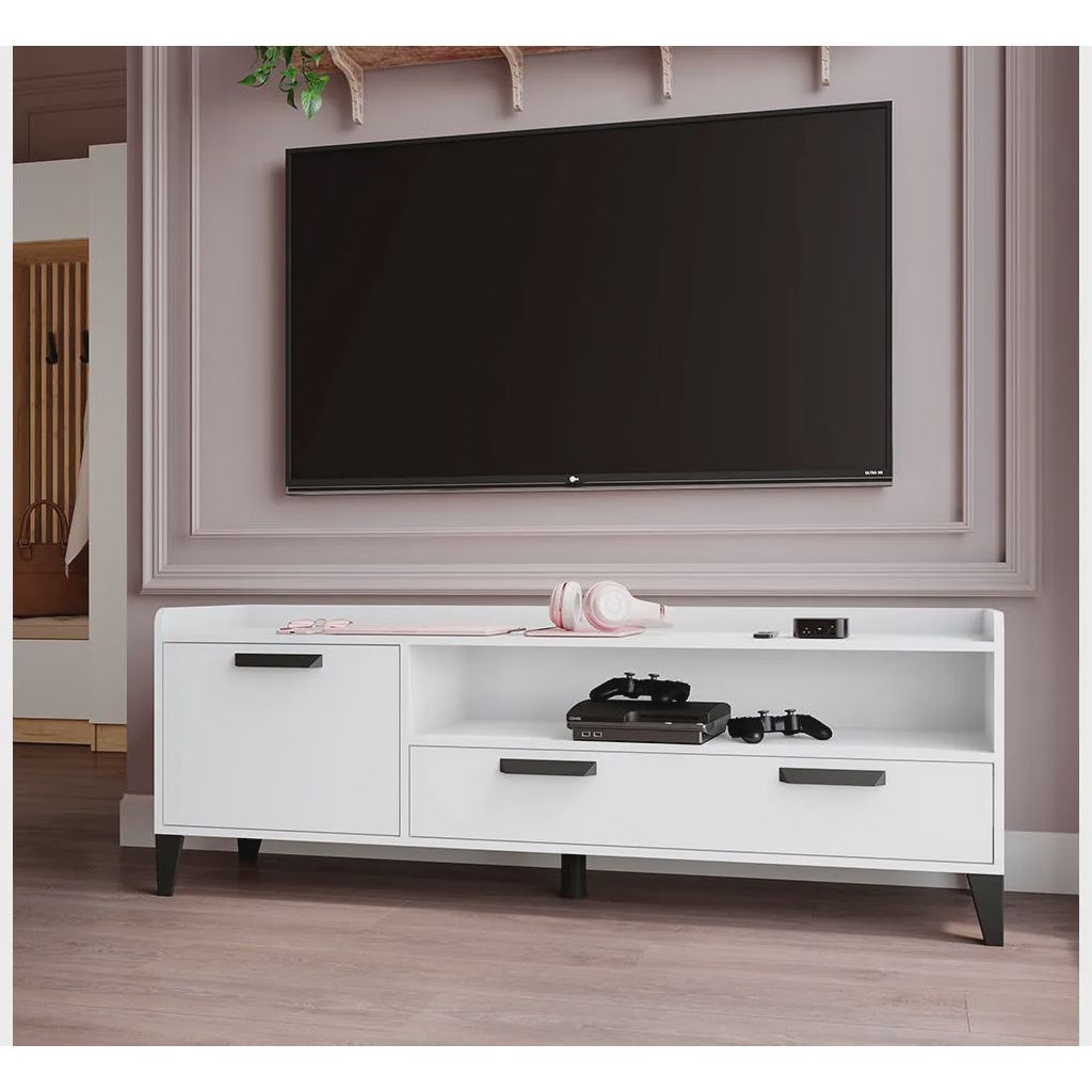 Тумба под ТВ рассчитана на установку телевизоров различных размеров. Используйте закрытую секцию для хранения вещей, которые нужно скрыть от глаз, а открытую полку - для демонстрации декора или размещения оборудования.
