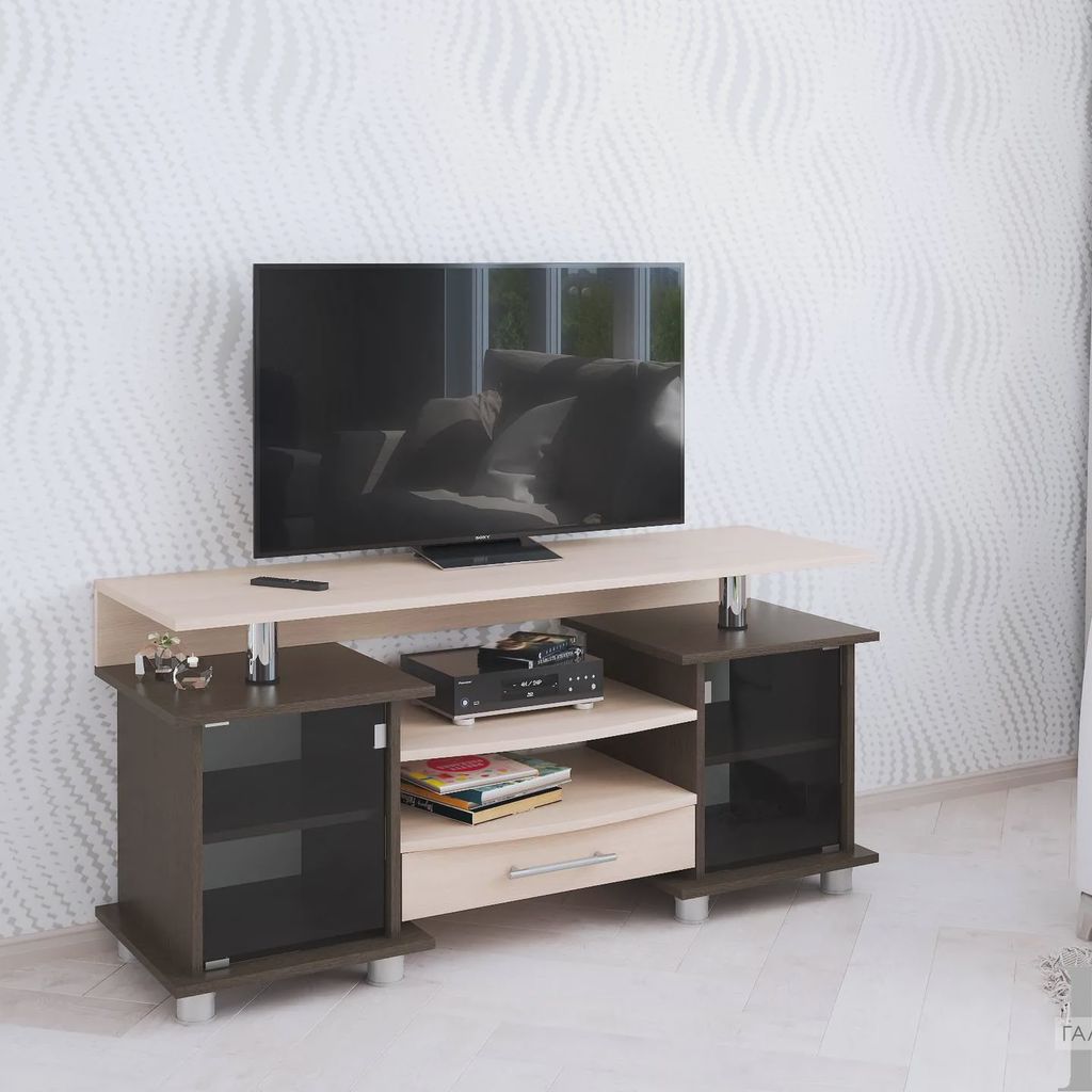 - Столешница: широкая и устойчивая столешница служит основанием для установки телевизора любого размера, а также может использоваться для дополнительных устройств, таких как саундбар или колонки.