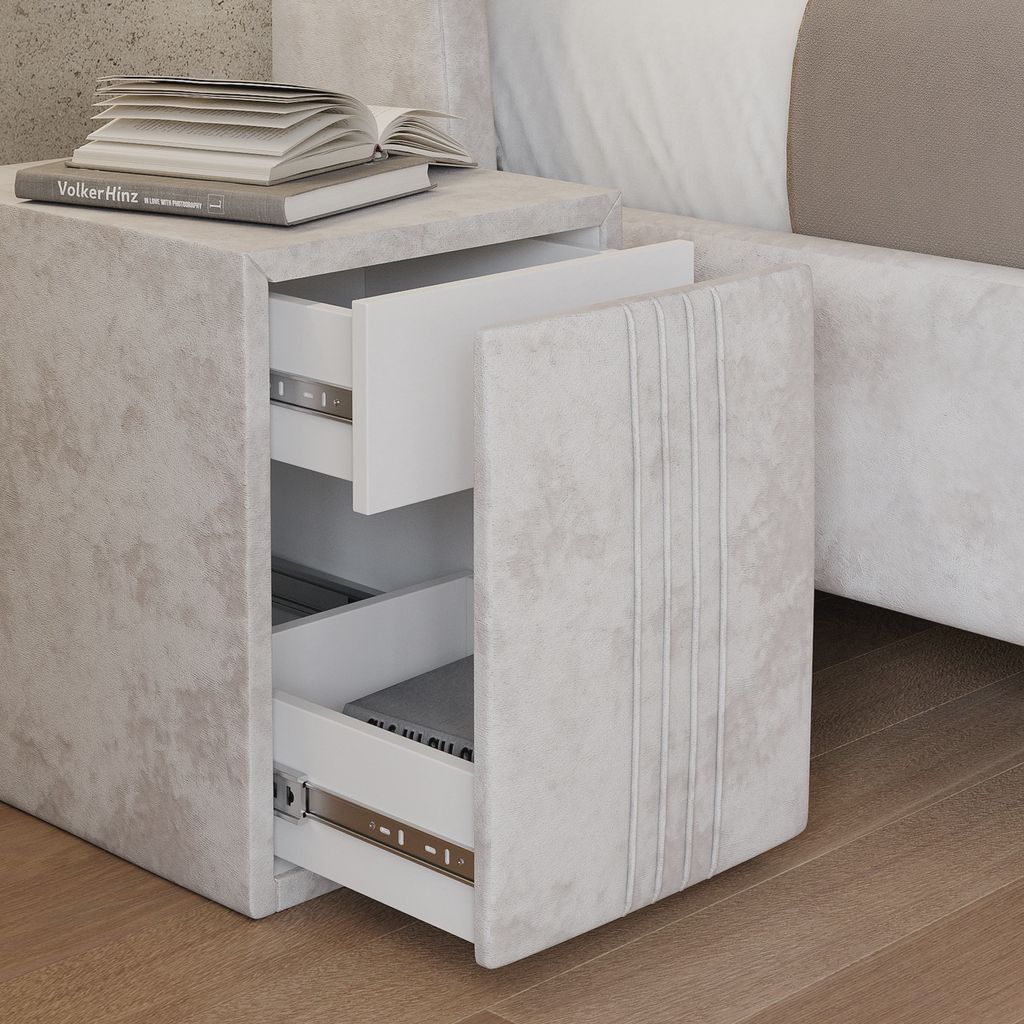 - Тумба обтянута мягким и приятным на ощупь велюром, который отличается долговечностью, устойчивостью к механическим воздействиям и гипоаллергенными свойствами.