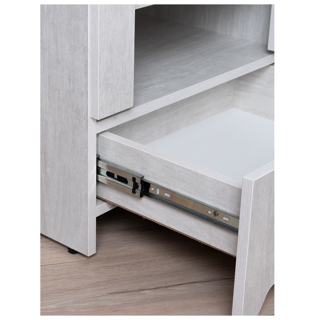- Под столешницей: тумба оснащена открытым ящиком для быстрого доступа к часто используемым предметам например, книгам или гаджетам.
